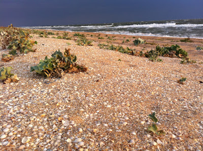 Wyjeżdzamy z Teodozji w kierunku na Kerch i po kilkunastu kilometrach odbijamy w miejscowości Batalnoe w lewo, kierując się przez kolejne wioski w kierunku Soljanoe, ostatniej osady na południowym krańcu mierzei. Śpieszymy się, bo chcemy znaleźć miejsce pod namiot za widoku, martwi nas też nadchodząca zmiana pogody. Wiatr piździ jak oszalały a chmurzyska nie zapowiadają niczego dobrego. Po wjeździe na striełkę, zjeżdżamy w prawo na plażę. Na plaży witają nas śmieci, znajdujemy nieco czystsze miejsce i w świetle czołówek czyścimy je ze butelek, kapsli i innego szajsu. Po kolacji nie możemy odmówić sobie kąpieli w morzu Azowskim, które nie dość że jest bardzo słone, to jeszcze jest najpłytszym morzem na świecie (średnia głębokość 7 m !). Na plaży zamiast piasku leżą petabajty muszelek, które trzeszczą i pękają pod stopami. Wskakujemy do wody po ciemku, która w świetle księżyca pobłyskuje fluorescencyjne. Każde zagarniecie wody wzbudza kryl, który spływając po nas pobłyskuje na zielono setkami kropek. Stoimy jak debile po kolana w wodzie, patrząc jak zielone kropki spływają po nas. Widok fiuta pobłyskującego na zielono - bezcenny Kończymy dzień leżąc po ciemku koło namiotu i popijając wino kupione w Teodozji.