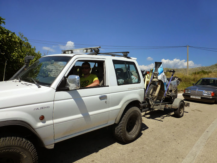 Bez przeszkód lecimy asfaltowymi winklami w dół. W jakieś wsi lokalny młodzian wyprzeda nas na posklejanym taśmą pierdzipędzie, jakby od tego zależało jego męskie ego i sukces w życiu wiecznym. Ignorujemy dzieciaka ku jego rozpaczy. W promieniach zachodzącego słońca mijamy Shkoder, bez napinki dojeżdzamy na nasz kemp. Padżerak wyprażony w słońcu wita nas po tygodniowej rozłące. Na dziś w planach zostało tylko postawienie namiotu, prysznic i wizyta w barze na plaży.