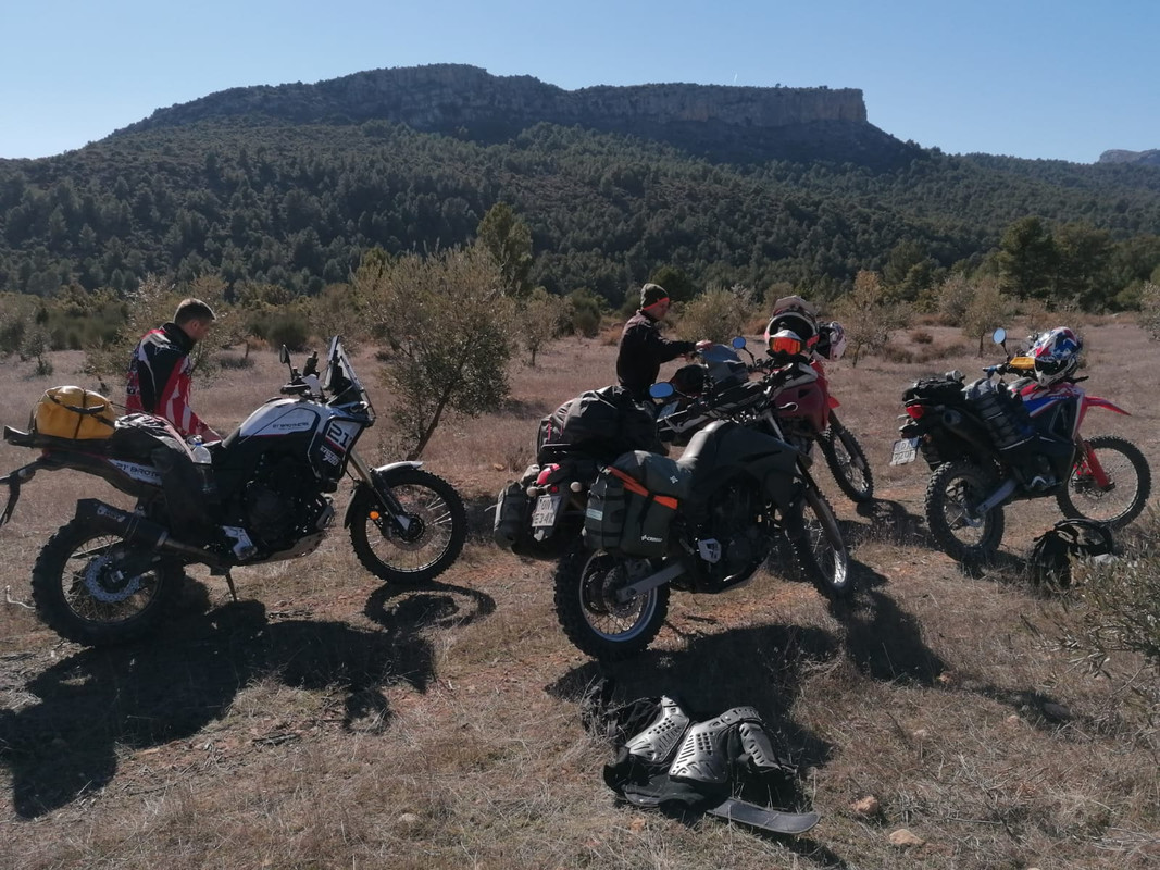 Pierwsza nocka chłodna. Około 2 stopnie. Nieco byliśmy zaskoczeni. Generalnie szykując się do wyjazdu cały czas braliśmy pod uwagę pogodę na samym południu a ostatecznie zaczęliśmy sporo wyżej. Nie ma co marudzić, dziś mamy nowy dzień. Wsiadamy na osiołki i ciśniemy po słońce. ![]() Zaczynamy jazdę kolejną porcją szybkich szutrów. Widoków za bardzo nie ma-towarzyszy nam mgła. Jest dość chłodno. W ruch poszły przecideszczówki coby się trochę osłonić od zimnego. Momentami szybkie szutry zmieniają się w wąskie dróżki pnące się z zakrętasami w górę. Gdy adrenalina na chwile wzrasta-zaraz opada. Znów szuterki. Raz na jakiś czas sprawdzam możliwości Crfki i ścigam się z T7. Do czasu aż za wzniesieniem zaskoczył nas wybetonowany lej na spływającą wodę. Takich atrakcji było coraz więcej, więc odpuszczamy sprawdzanie maksymalnych prędkości oraz możliwości zawieszenia. ![]() ![]() W okolicy południa w końcu mgła opada. Od razu zrobiło się cieplej. ![]() ![]() ![]() Postanawiamy sobie zrobić mały popas na słoneczku. ![]() ![]() ![]() Po przerwie wracamy do jazdy. Droga z szuterku zmienia się na drogę prowadzącą wzdłuż koryta rzeki a momentami i korytem. Raz po raz zmieniamy stronę, omijamy kamulce. Robi się ciekawiej. W pewnym momencie droga odbija od koryta rzeki. Tym razem jedziemy kamienistymi ścieżkami w lesie. Droga nie jest trudna ale już wymaga więcej skupienia coby się nie wyłożyć na sypkiej nawierzchni. Po chwili zaczyna się kilka podjazdów po kamulcach. Gubi się tam Paulina ale szybko nas odnajduje i pokonuje podjazd. ![]() Pod koniec dnia widoki się zmieniają. Robi się nieco stepowo. ![]() ![]() Zawijamy do Huéscar po prowiant a później w poszukiwaniu miejscówki na biwak. Pić czy nie pić. O to jest pytanie? ![]() ![]()