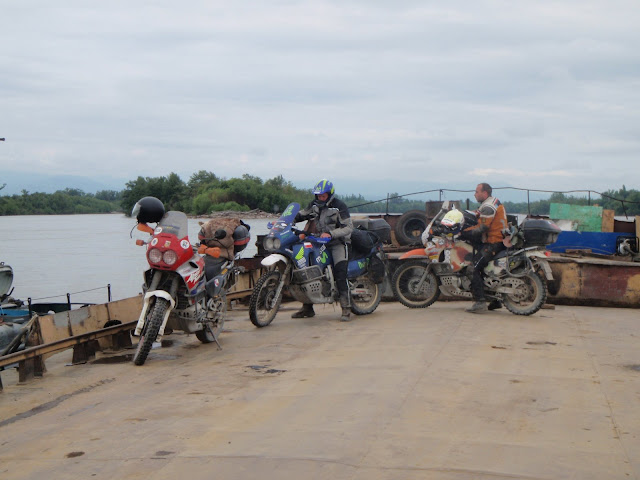 Rano start do Esso. Dima nie jedzie, musi jakiś lot helikopterem wykonać i jakiś pocisk balistyczny znaleźć, Max też wraca prowadzi szkołe kjokuszinki czy jak to się nazywa i ma zajęcia. Locha już w nocy został wyekspediowany do PKC, aby go tam poskładali, reszta jedzie. Startujemy. 5km nawet nie przejechaliśmy gdy w KLE urywa się klema od akumulatora. Dalej z nami nie jedzie. Dzwoni po kumpli aby go ściągnęli do PKC. Izi pognał pierwszy, ja z Saszą jedziemy wolniej, jakieś 70 – 80 km/h. Droga raz lepsza, czyli bez dziur, raz gorsza z dziurami, tarką, zgubionymi kawałami drewna, które spadło z ciężarówek (dobrze że w dzień jedziemy, bo w nocy można się nie źle nadziać na leżący klocek). Jedziemy w odległości jeden od drugiego jakieś 800 m. Kurzy się strasznie. Co jakieś 40 km przejeżdża auto, co 20 km jakiś zakręt. Droga cały czas monotonna, ten sam krajobraz, czyli po jednej i po drugiej stronie las. Żadnego pobocza, tylko na krawędzi drogi usypane pryzmy szutru. Przed Miłkowem kontrola milicji, a w samym mieście jest jedyna stacja pomiędzy PKC a Kluczami. Jemy tam obiad. Zawsze Izi zamawiał żarcie, cały czas coś innego. Zawsze do obiadu zamawialiśmy sałatki. Mają ich setki, każda różna i każda tak samo dobra. Jak wyliczyliśmy do Esso zrobiliśmy z 600km z czego 32km asfaltem. Przy zjeździe do Esso zatrzymuje nas koleś jeepem. Gadka, szmatka, częstuje nas kwasem chlebowym. Kupujemy jeepa i podróżujemy jak Obi-Wan-Kenobi. Koleś mówi, że wczoraj w Esso na moście zastrzelili niedźwiedzia.